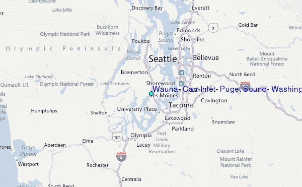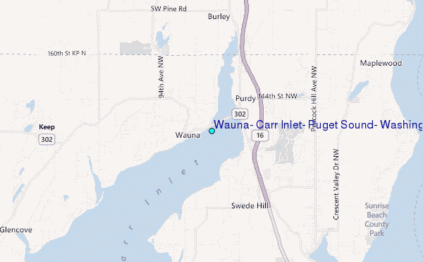 Use this relief map to navigate to tide stations, surf breaks and cities that are in the area of Wauna, Carr Inlet, Puget Sound, Washington.
