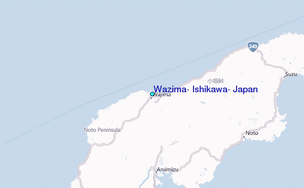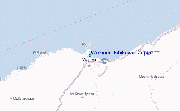 Use this relief map to navigate to tide stations, surf breaks and cities that are in the area of Wazima, Ishikawa, Japan.