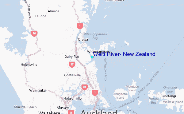 Use this relief map to navigate to tide stations, surf breaks and cities that are in the area of Weiti River, New Zealand.