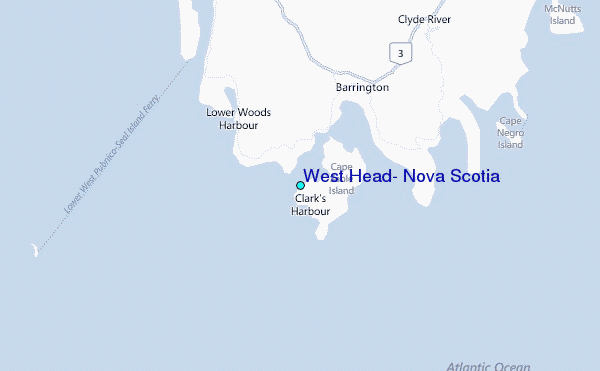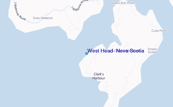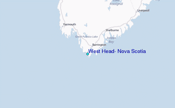 Use this relief map to navigate to tide stations, surf breaks and cities that are in the area of West Head, Nova Scotia.