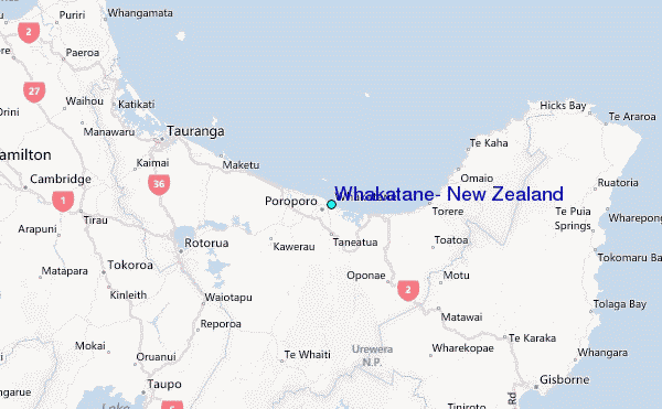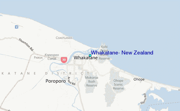 Use this relief map to navigate to tide stations, surf breaks and cities that are in the area of Whakatane, New Zealand.