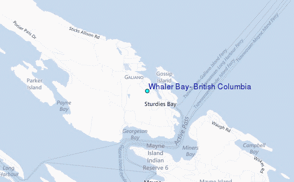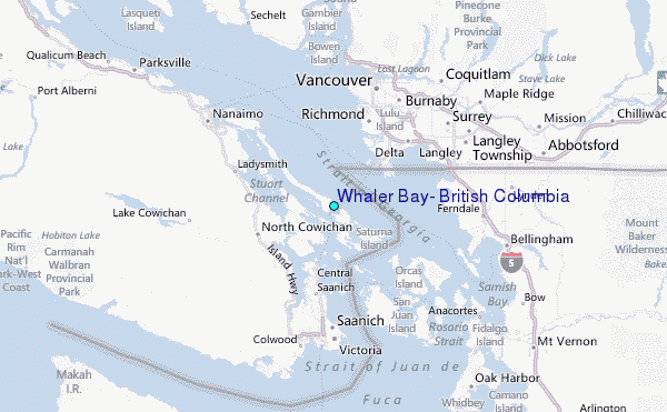 Use this relief map to navigate to tide stations, surf breaks and cities that are in the area of Whaler Bay, British Columbia.