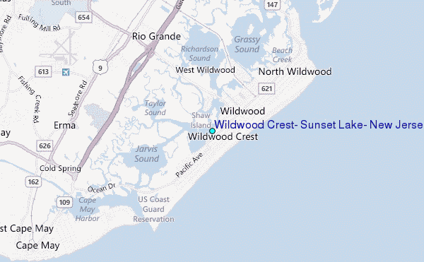 Other Nearby Locations' tide tables and tide charts to Wildwood Crest, Sunset Lake, New Jersey: