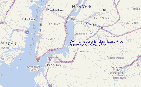 Other Nearby Locations' tide tables and tide charts to Williamsburg Bridge, East River, New York, New York: