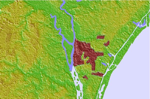 Use this relief map to navigate to tide stations, surf breaks and cities that are in the area of Wilmington, North Carolina.