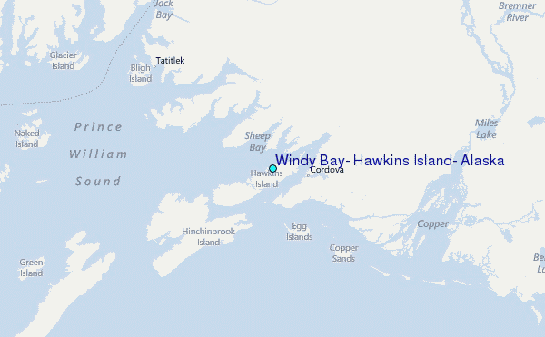 Use this relief map to navigate to tide stations, surf breaks and cities that are in the area of Windy Bay, Hawkins Island, Alaska.