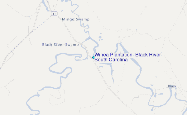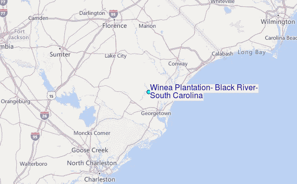 Use this relief map to navigate to tide stations, surf breaks and cities that are in the area of Winea Plantation, Black River, South Carolina.