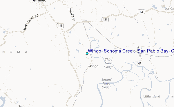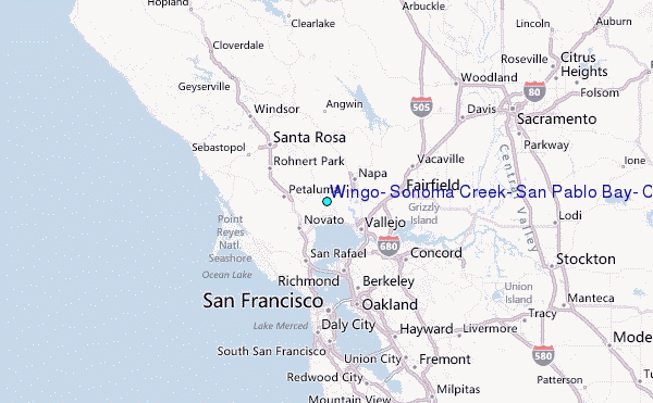 Use this relief map to navigate to tide stations, surf breaks and cities that are in the area of Wingo, Sonoma Creek, San Pablo Bay, California.