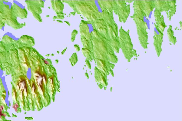 Use this relief map to navigate to tide stations, surf breaks and cities that are in the area of Winter Harbor, Maine.
