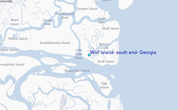Use this relief map to navigate to tide stations, surf breaks and cities that are in the area of Wolf Island, south end, Georgia.