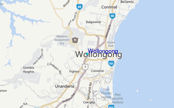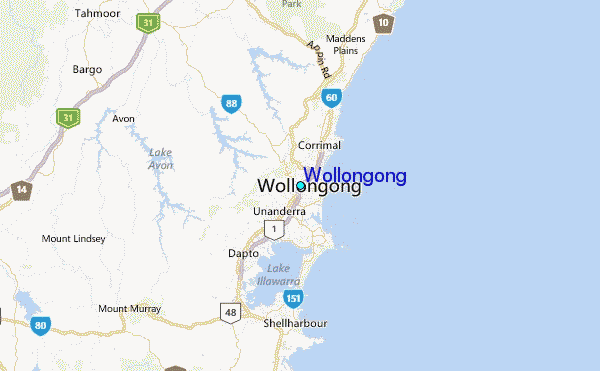 Use this relief map to navigate to tide stations, surf breaks and cities that are in the area of Wollongong.