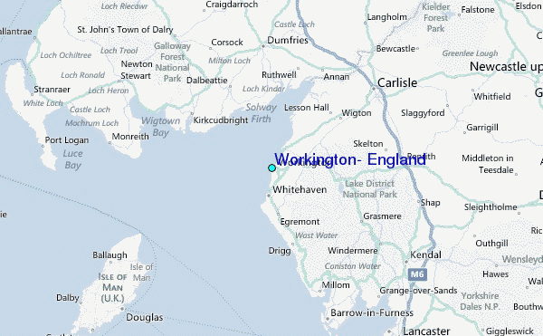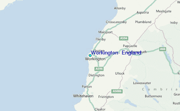 Use this relief map to navigate to tide stations, surf breaks and cities that are in the area of Workington, England.