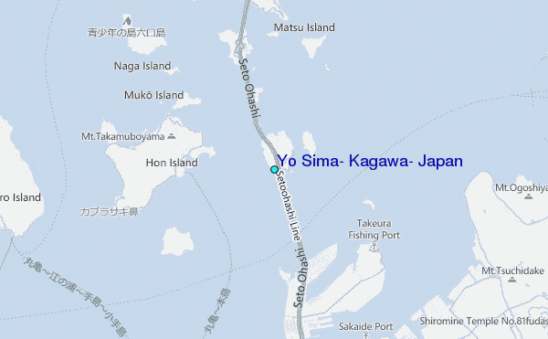 Use this relief map to navigate to tide stations, surf breaks and cities that are in the area of Yo Sima, Kagawa, Japan.