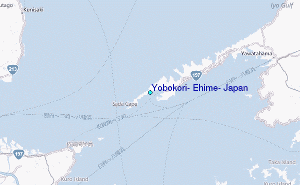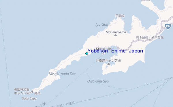 Use this relief map to navigate to tide stations, surf breaks and cities that are in the area of Yobokori, Ehime, Japan.