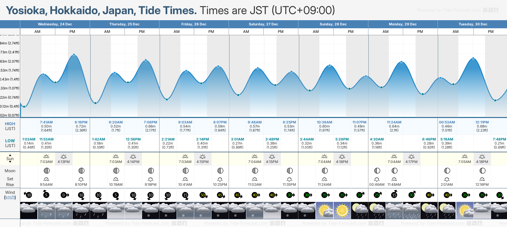 Tide Times for Yosioka (tomorrow): Wednesday 24 December 2025