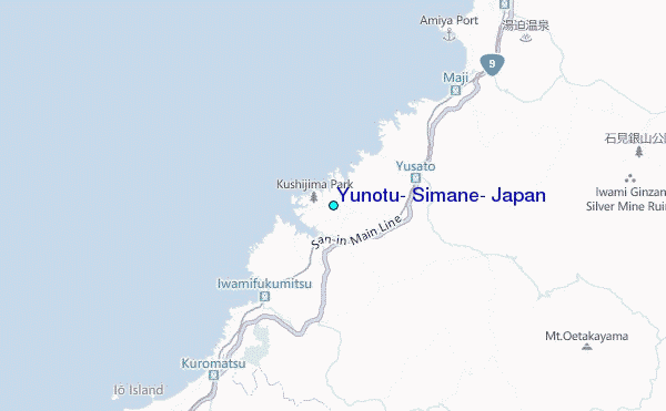 Use this relief map to navigate to tide stations, surf breaks and cities that are in the area of Yunotu, Simane, Japan.