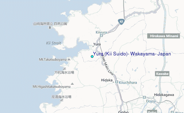 Use this relief map to navigate to tide stations, surf breaks and cities that are in the area of Yura (Kii Suido), Wakayama, Japan.
