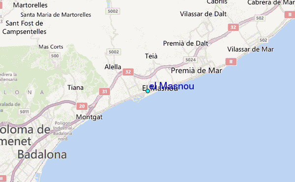 Use this relief map to navigate to tide stations, surf breaks and cities that are in the area of el Masnou.